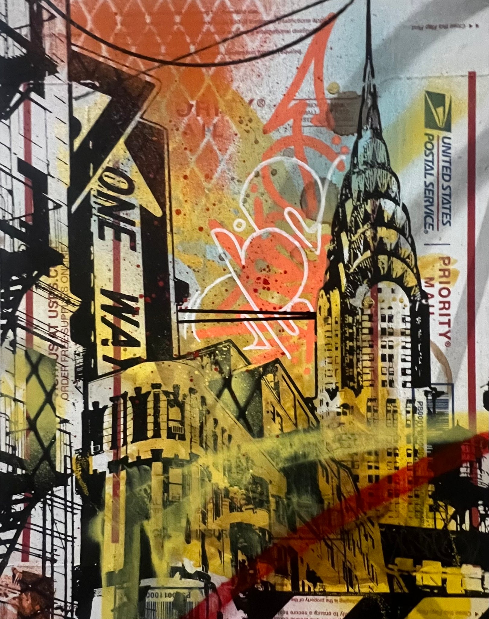 One of a kind hand pulled and embellished screenprint on usps issued cardboard packaging. Signed by artist. Each piece comes packed in folder with stickers.